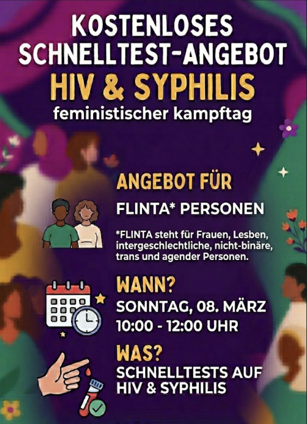 Kostenloses Schnelltest-Angebot HIV & Syphilis zum feministischen Kampftag